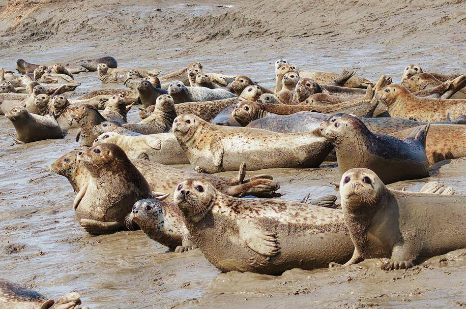 귀여운 점박이물범 200마리, 랴오허 하구에서 휴가 만끽
